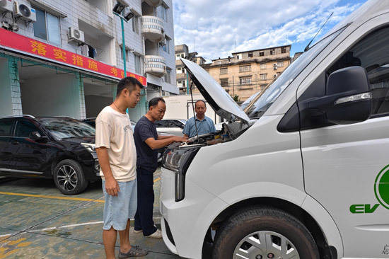浦北烟草配送员开展出车前车辆安全检查。何小华摄