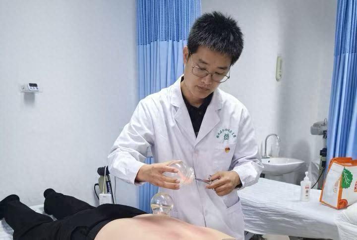 北京市顺义区仁和镇卫生院副院长张赛为患者进行治疗。受访者供图