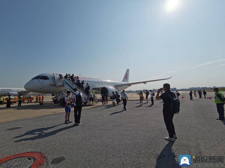 2023年5月29日,乘客们在登机前为C919拍照