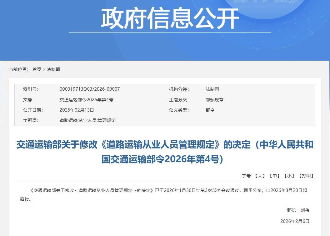 河南省交通运输厅要求各级交通运输主管部门指导技术支持单位,集中恢复因年龄超60周岁被注销的从业资格证件数据,并将有效期统一延长至63周岁。调整对象为2026年3月20日起,年龄已超过60周岁但尚未满63周岁的从业人员。